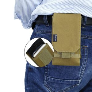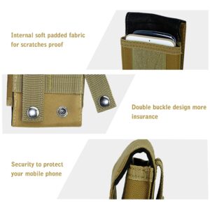 Heavy Duty: This molle cell phone pouch holster is made from 1000 denier waterproof cordura nylon, hoop and loop fastening with stronger stitching for long last using. Soft lining for shock absorbing. Sturdy webbing belt loops on rear, hard wearing straps buckle makes more secure.