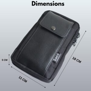 [Multi-pocket] This cell phone holster with belt loop has 3 pockets, extra large capacity for carrying medical supplies, portable GPS devices, small tools, tactical pen, digital camera, wallet, credit cards, cellphone, earbuds, power bank, charging cable, driver’s license, sunglasses and passport.